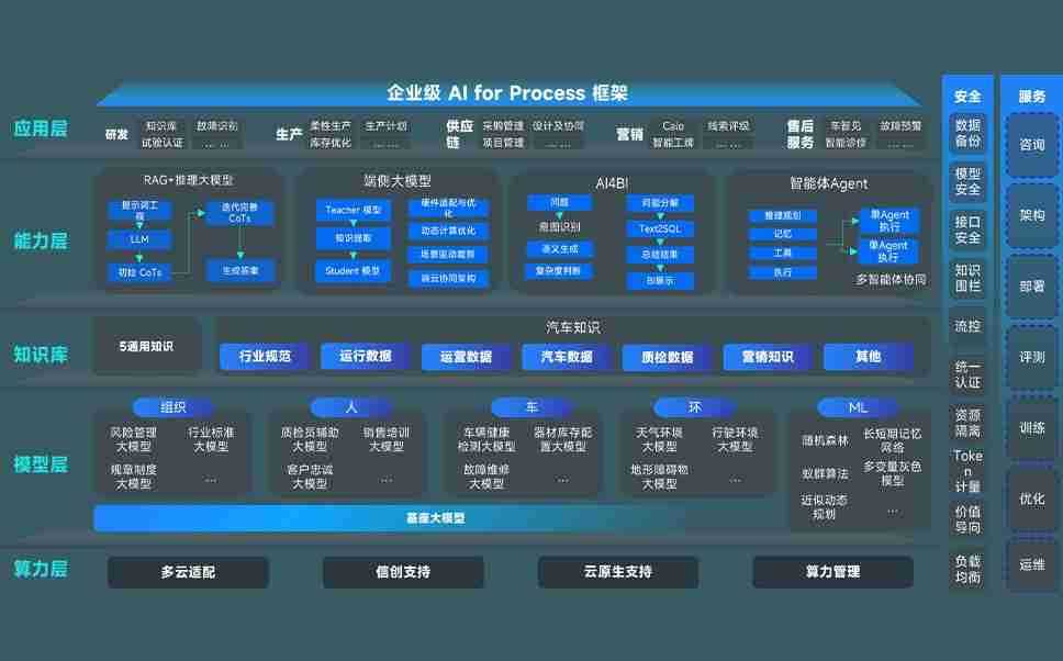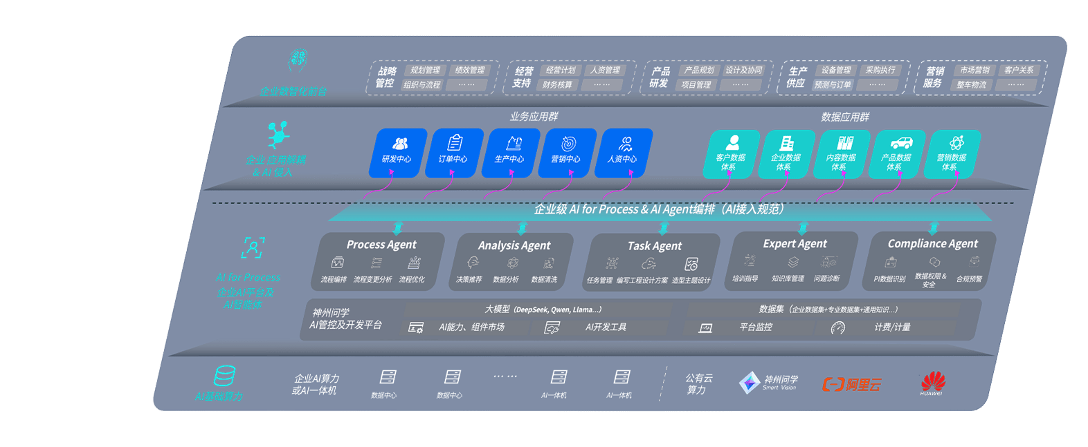 端到端的一站式AI工作空间深度融合了从企业战略规划到日常经营的全流程业务板块,,,,定向解决车企内部领域多、、、、部门多、、、链条长、、、场景碎片化等难题,,,,支持车企快速构建以AI为核心的生产力写作体系,,,,实现任务执行与AI能力的无缝集成与交互